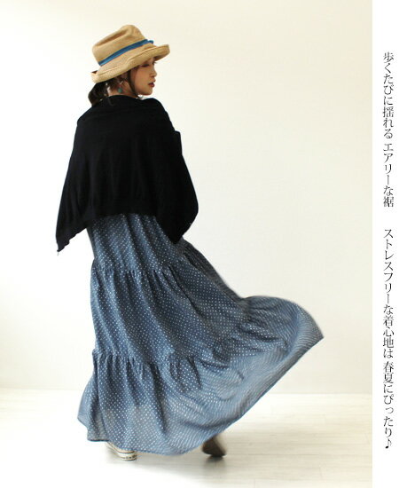 <月間優良ショップ賞51回受賞>【シャビーティアードワンピース 】フリーサイズ ティアード ドット 水玉 ガーリー アンティーク ヴィンテージ Vネック 五分袖 ブルー カジュアル ワンピース ロング マキシ 高身長 体型カバー