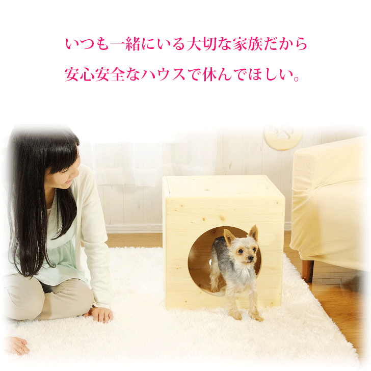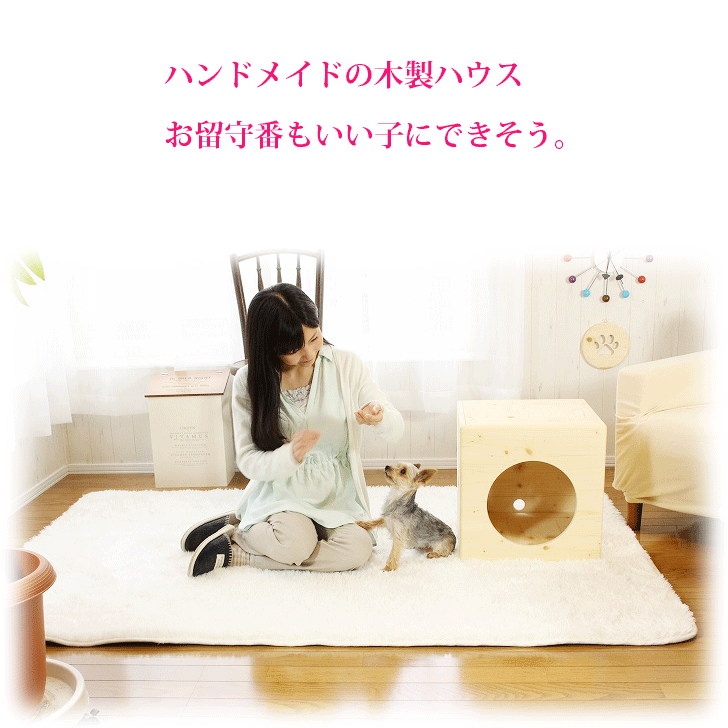 商品の説明です 商品名 【おやすみハウスS 入口丸型】 犬用 犬小屋 カントリー家具 ハウス ベッド サイズ 外側:幅40センチ 奥行き40センチ 高さ40センチ 内側:36.4センチ 奥行36.4センチ 高さ36.4センチ 入口の大きさ:直径約26センチ 材質 主要材:北海道産の大地で育ったパイン材(エゾマツ、トドマツ)材料の厚さ18ミリ 塗料 フィニシュオイル(含浸型油変性ウレタンオイル塗料) 北海道の塗料屋さんのオリジナル配合の塗料です。普通の自然塗料より、撥水性を向上させてます。 有害物質のトルエン、キシレンは含んでおりません。 ホルムアルデヒドも安全基準最高のフォースター 主材料が亜麻仁油なので人や動物にやさしい塗料です 説明コメント わんちゃんはあなぐらが大好き。狭くて薄暗くてまわりが壁に囲まれていると安心しておやすみができます。部屋の中をウロウロしていたら、落ち着ける場所を探しています。 犬用、室内用の木製ドッグハウス(犬小屋)になります。 北海道産のパイン材で北海道の家具職人が、手作りで作っています。 角が丸く処理されているので、優しくて、安心安全なハウスです。 ワンちゃん用の個室、プライベートゾーン、ベッドルームとして気に入っていただけると思います。 サークルやケージの中に置いてあげたり、おひるねスペース、マイルームとしてお部屋の片隅に置いてあげて下さい。 北海道産のパイン材でひとつひとつハンドメイドで仕上げた、chocomocoオリジナルデザインのおやすみハウスS入口丸型をかわいいわんちゃんに。 「わんちゃんが気に入ってくれるか心配」な方へ。ほとんどのわんちゃんは「おやすみハウス」をすぐに自分の居場所だと認識して、自らハウスに入ります。 でも稀にそうでないわんちゃんもいます。そんな時は無理に押し込んだりは絶対にしないで下さい。ハウスにおやつやご飯を入れたりしてゆっくり慣らしていって下さい。そのうちに自分のかけがえのない安らぎの場所だと認識するでしょう。 ちなみに、うちのわんちゃんは、ベッドルームとして、お昼寝スペースとして、くつろぎ空間として、そして雷が鳴ると素早く入ってました。避難場所だったのかも。 注意書き 写真表現ですので、色イメージが多少異なる場合があります。 小傷や節の小さな割れ、多少の反りがあるかもしれませんが、無垢材の自然な風合いとして、ご理解いただきますようお願いいたします。 1台1台手作りなので、節や木目は写真と異なります。 ご注意!ヒーターを長時間使用すると底板が割れることがあります。ハウスの底には、ゴム脚が取付けられているので、滑り止めになります。 下の写真は、購入者の方から送っていただきました。 自然の木の香りは、人間のみならず、わんちゃんもやはり心地いいのでしょう。 周囲が木で囲われているので、外敵から身を守るという観点からも 安心できる空間になると思います。 ネームプレート、なまえシール、肉球シールはオプションです。 ネームプレートは⇒コチラから なまえシール、肉球シールは⇒コチラから 白のアルファベットのオブジェは⇒コチラからどうぞ おやすみハウスS 入口ドーム型は⇒コチラから サイズ変更や、デザイン変更、オーダーメイドも承ります⇒コチラからどうぞ。