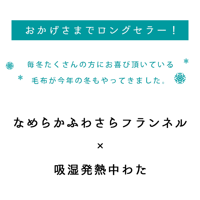 サイズ一覧 シングル シングル2枚組 セミダブル ダブル クイーン キング 商品詳細 サイズ 約140×200cm 組成 表・裏生地:ポリエステル100% 詰め物:ポリエステル65% レーヨン35% 仕様 2枚合わせ 衿付き トリコットヘム 吸湿発熱わた(詰め物重量0.3kg) 製品重量 約1.4kg 生産国 中国製 お取扱い 詳しくはこちら 商品番号 6SA-FQ00015258NB / 6SA-FQ00015258PI / 6SA-FQ00015258BE / 6SA-FQ00015259GR / 6SA-FQ09015272BR / 6SA-FQ09015272NB / 6SA-FQ01015249NB / 6SA-FQ01015249GR Lot.NO C-TO その他注意 ■洗濯の際は、タグなどに表記されている内容を必ず確認してから行ってください。 ■洗濯機をご使用される場合は、必ず洗濯機の取扱説明書に従ってください。 ■できるだけ実物と同じ色合いになるよう徹底していますが、ご使用の端末やブラウザなどにより実物と色合いが異なって見える場合がございます。 ■重さの表記をしておりますが、およその値です。わずかですが個体差があることをご考慮下さいませ。 ■商品のサイズ・重量は約表記です。サイズ・重量を保証するものではございませんのでご了承ください。 ■柄の出力には個体差があります。 ■ページ内の・鞫怩ノは販売終了した色柄を使用したものもございます。 ■2023年度入荷分より、梱包形態が変更になりました。(画像参照) おすすめポイント ・フランネル素材 長所:さらりと感じるほどの繊細なタッチが人気の冬の生地。一般的なネルシャツなどの「ネル」の派生の生地ですが、毛足がネルに比べて長く、なめらかな触れ心地です。 短所:静電気やがやや多いのが難点です。 ・二枚合わせ 二枚の起毛生地を、外側に風合いの良い面を向けて二枚合わせたタイプです。毛羽の隙間だけでなく二枚の間にもあたたかな空気を含むので、効率よくあったかい空気を体の周りに纏うことが出来ます。本品は生地が薄手なので、2枚合わせとしては軽量な仕上がりです。 ・吸湿発熱わた使用 つめものに吸湿発熱機能のあるワタを使用。体温から生まれる熱や、汗・皮膚呼吸による湿気によってほんのり心地よいあたたかさを生み出します。 ・洗濯機で気軽に洗える 洗濯機対応だから毎日清潔にお使いいただけます。 ・西川製品 西川は、日本有数の寝具メーカー。1566年創業。450年という長い歴史があり、その中で培ってきた伝統や技術に準ずる品質の高さは類を見ません。安心できる寝具を選びたいのならメーカーで選んでみるのも◎。 ※東京西川(西川産業) 西川リビング 京都西川 の3社が統合して西川株式会社に社名が変更になりました。約140×200cm | シングル 西川 お気に入りをもっと長く。西川は寝具メーカーの中でも特に歴史あるメーカーです。1566に創業し、1947年に設立された同社は長い歴史の中に培った技術で、上質な寝具を展開しています。ただ古いのが良いのではなく、現在に至るまでの長きにわたり愛されるに値する品質管理を徹底しているからこそ、私達は同社の商品を自信をもっておすすめしております。 フランネル ふんわりさらり、パウダリー。ふわりと起毛したフランネルという生地を採用しています。繊維の繊細さから、冬によくある「もこもこ」「ふわふわ」とはまた違った「さらさら」という触れ心地。パウダースノウのような柔らかくてサラサラした感触が人気の冬のファブリックです。 2枚合わせ ボリューム&保温性アップ。2枚の毛布生地を一枚の毛布にしました。2枚重なった生地の間には空気の層ができるので、高い保温力を発揮します。もちろんふわふわのボリューム感も1枚もの以上の仕上がりになります。 吸湿発熱中わた 吸湿発熱効果のある繊維を中わたに使用。これによって毛布がカイロや電気毛布のように発熱するわけではありませんが、体温から生まれる熱や汗・皮膚呼吸による湿気によってほんのり心地よいあたたかさを感じられます。 Detail ふっくらとした衿付きで、首元までふんわりあったか。外から冷たい空気が入ってくるのを防ぎ、中の暖まった空気も逃しません。 毛布のフチはトリコットヘム加工で2枚合わせにした生地をしっかりと縫製しています。 Designs ※写真はイメージです。このページは2枚組セットの買い物かごです。 詳しいご利用方法について