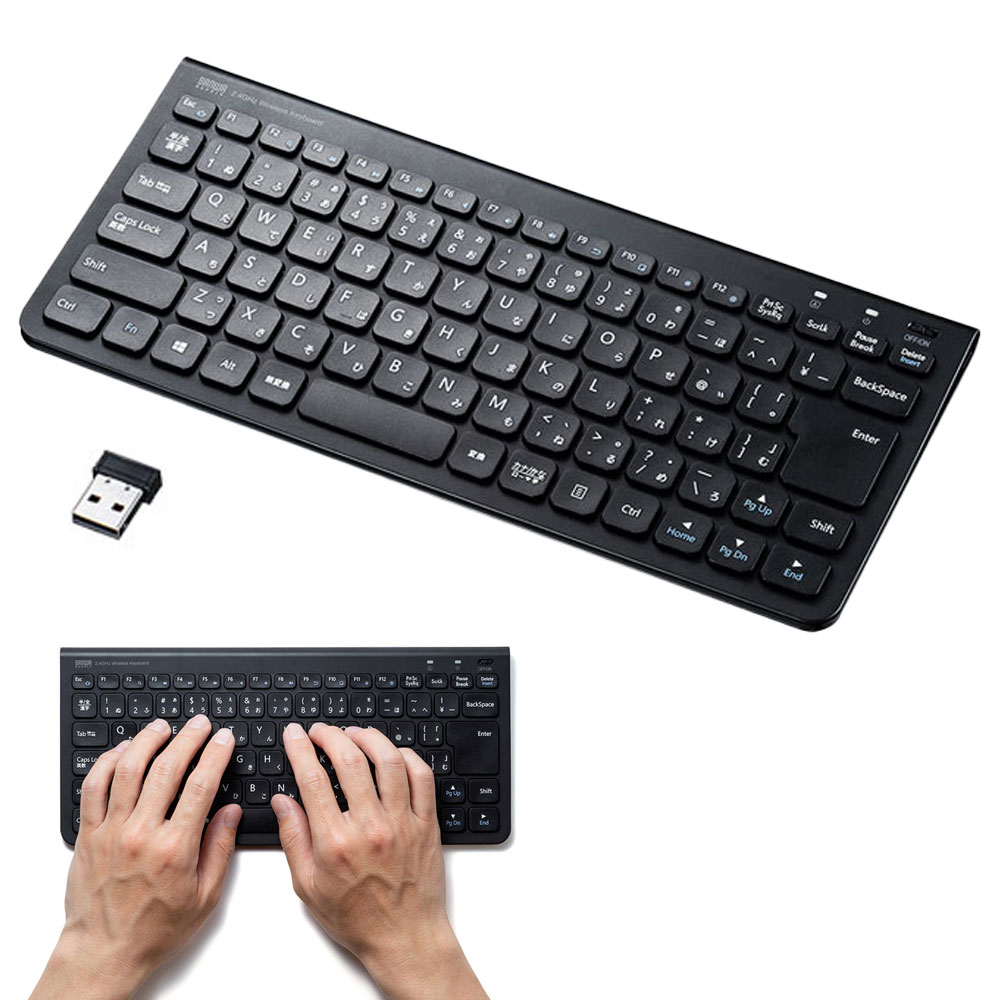 無駄を省いた薄型&コンパクトなパンタグラフ式ワイヤレスキーボード。ブラック。※箱にキズ、汚れがありますが商品は新品です。<特長>●電波の到達距離の長い、周波数「2.4GHz」ワイヤレス設計です。最大10m離れた場所からでも動作可能です。 ●最薄部6mmの超薄型形状です。最厚部でも14.4mmで持ち運びや収納に便利です。 ●ノートパソコンと同じパンタグラフキー方式を採用しています。キーの形状はアイソレーションタイプで爪の引っ掛かりを軽減します。 ●日本語入力時に便利な大型エンターキーを搭載しています。 ●経済的でエコな繰り返し充電できるリチウムイオン電池を内蔵しています。 ●持ち運び時に便利な電源ON/OFFスイッチ付きです。 ●USBポートに接続しても邪魔にならない小型レシーバーです。●テンキー無しでキーボード幅228mmのコンパクト設計です。 ●キーボードカーブを採用しています。遠くのキーも押しやすいカーブ形状です。 ●角度調整できるスタンド付きです。 ●使わない時はキーボードを立てて収納できる構造です。 ●未使用時や持ち運びの時に誤入力を避ける電源スイッチ付きです。 ●ボリューム調整などメディアプレイヤー操作時に便利なファンクションキーを搭載です。<仕様>■ワイヤレス方式:2.4GHz■キー数:86キー■キーピッチ:18mm(文字キー以外は除く)■キーストローク:19±0.20mm■動作力:67g■消費電流:6mA以下■動作時間:連続動作時間48時間 ■充電時間:2時間 ■電池容量:280mA■キースイッチ:パンタグラフ■サイズ:W288.2×D127.4×H14.42mm■重量:270g ■付属品:レシーバー、充電ケーブル、取扱説明書<受信機>■インターフェース:USB HID Ver.1.1準拠■コネクタ:Aタイプコネクタ■受信距離:10m■<ご注意>※ノートパソコンや各メーカー純正キーボードのファンクションキーにあらかじめ割り付けられている特殊機能(画面の明度調整やボリュームのアップダウンなど)は、このキーボードからは操作できません。 ※Windowsが起動する前のコマンド(BIOSの設定、SCSIボードの設定など)は使用できない場合があります。■対応OS:Windows 11・10・8.1・8 ■対応機種:Windows搭載(DOS/V)パソコン※ただし、USBポートを持ちパソコン本体メーカーUSBポートの動作を保証している機種。対応確認済の機種の例はこちら ・ ASUS Chromebook CX34 Flip(CX3401) ・ ASUS Vivobook S 15 ・ Chromebook (ASUS) ・ dynabook X83/LW ・ Lenovo 300e Chromebook 2nd Gen(2020年モデル) ・ NEC Chromebook Y2 ・ Surface Go 2 ・ Surface Pro 2017(LTE) ■対応ゲーム機: ・ Nintendo Switch 2 ・ PlayStationR5(2023年11月発売モデル) ・ PlayStationR5(2020年11月発売モデル) <関連キーワード>無線 スタンダード シンプル プレステ プレイステーション ゲーム ゲーミング シンプル 黒 テレワーク 在宅勤務 在宅ワーク 男性 女性 SKB-WL32BK サンワサプライ 4969887696736仕様ちがいBluetooth有線USB-タイプA有線USB-タイプCワイヤレスUSB-タイプA