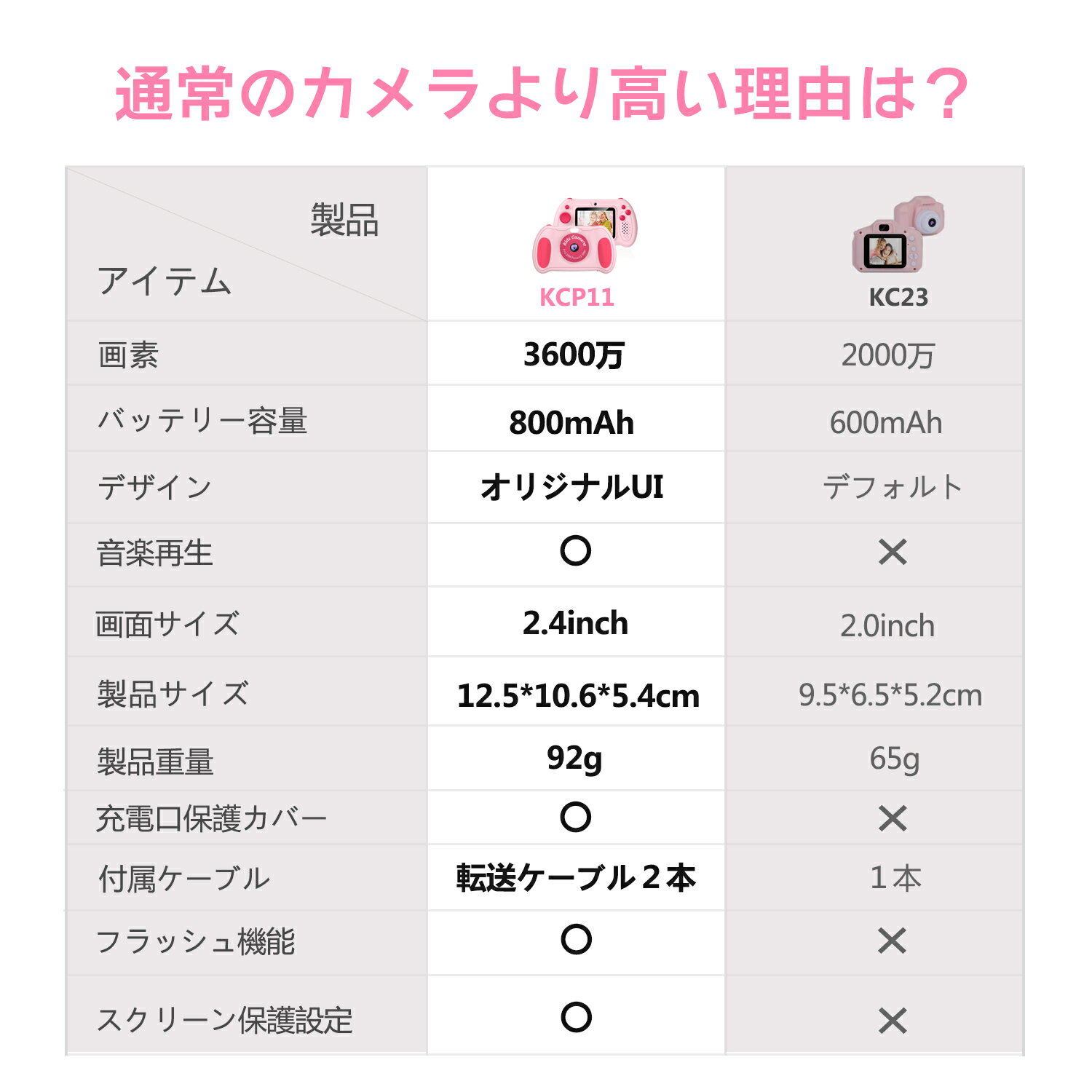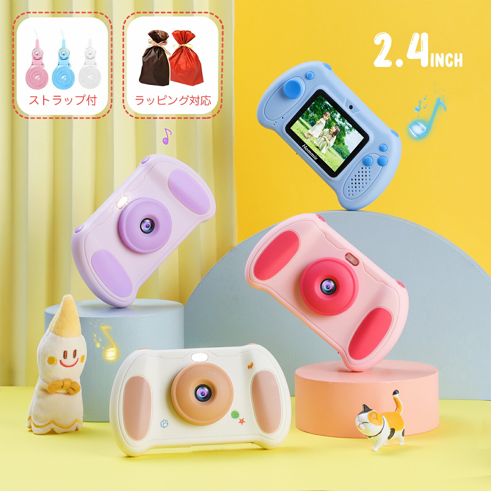 ▼複数商品を個別ラッピング希望の方はこちら▼ 商品と一緒に必要個数分のラッピングサービスをご購入ください↓こちら 子供の遊ぶ時間を充実させるおすすめおもちゃ✩子供カメラ 商品特徴 「前後3600万画素&高解像度」 ♥子供用デジタルカメラには前後3600万画素の超高画質を楽しめます! ♥2.4インチIPS大画面とデュアルレンズ(自撮り可)48MP&1080P解像度が搭載されています。精緻な描写力と豊かな表現で、被写体を細部まで美しく撮影できる。多彩な撮影表現が可能。 「MP3として使えるデジカメ!」 ♥音楽再生をサポートする子ども用トイカメラ!内蔵のアップグレードスピーカー、音量を調整することができ、音楽を含むMicro SDカードを挿入すると、MP3音楽プレーヤー♫として使用できます。ボリュームは0〜7調節でき、純音信号がそのまま流し、明瞭な高音域から、豊かな中域、迫力の重低音までどの音域もクリアな音質でバランスよく実感できます。 (注:Micro SDカードを挿入する時のみMP3機能を利用可能) 「デュアルレンズ付き」 ♥デュアルレンズ付き、簡単に自撮りフロントかメラだけでなくバックカメラも帯しており、自撮り写真も動画も思うままに撮影でき、自撮り好きなお子様におすすめです! 「2.4インチIPS大画面スクリーン」 ♥2.4インチ大画面で超高画質、市場の一般2.0インチ画面のカメラと比較して、より滑らかでキレイな画像が楽しめます。子供の目をしっかりと保護することもできます。 「8倍光学ズーム」 ♥8倍光学ズーム付きで、レンズの焦点距離が長くなり、被写体は大きくなるが、画質が劣化するようなことはない。少し離れた場所から撮影しても、ディテールが確認可能!上下ボタン長押しによりレンズの焦点距離を変えます。 「多機能なトイカメラ」 ♥4種類の動画撮影モードのほかに、28種以上のフレーム機能があり面白い写真を撮ることができます。撮った写真を子供が好みで再加工できるので、お子供の想像力がアップする。 ♥撮影モードで、ジョイスティックを下押すと、可愛いフレームを選べます。写真の縁を彩るかわいいフレームの他に、風船や看護婦さんにもなれる写真フレームがたくさん。子供たちにこのカメラの魅力を感じさせ、幸せな時間を作られます。 ♥ビデオ録画、ステッカー、連写撮影、タイマー撮影、オートフォーカス、日付設定などに対応します。 「操作も簡単」 ♥操作はとてもカンタン。ボタンが少なく、ワンタッチを押せばすぐに写真が撮れるようなシンプルな操作法。簡単な手順で操作が可能なので、小さいお子様でも取扱いしやすい知育玩具です。 ♥カメラ機能を使用する時、ジョイスティックを左押しすると、フラッシュ機能を「ON/OFF」を切り替えます。右押しするとタイマー機能「ON/OFF」を切り替えます。上/下押しすると、可愛いフレームや写真モードを選択できます。 ♥高性能で小さなお子様にも簡単に操作し、素晴らしい瞬間を記録することができます。 「1080P HDビデオ動画」 ♥静止画・音声付き動画を撮影することが可能なデジタルカメラ。 ♥ビデオレートで普通・スロ動き・速い動き3つのモードを調節可能!子犬と遊ぶ時たくさん撮影して、家族と振り返って見ても楽しい。 「3つのスマートゲームを搭載」 ♥カメラ本体はゲーム機外形と設計されているため、ゲームを遊ぶ時は操作しやすいです。スネーク、そこばんアグレッシブ、テトリスという3つの知育ゲームが遊べます。 「フラッシュ付き・明るさ自動補正」 ♥最新代の子供カメラはフラッシュ機能を追加し、夜景や逆光などの難しいシーンも、シャッターを切るだけで美しく撮影できます。 ♥室内と室外など、光の量がことなる場所でも対象に合わせて明るさを自動で調整。失敗が減ることで撮影に集中できます。 「タイマー撮影設定で集合写真も◎」 ♥デジカメのタイマー撮影機能搭載で、2秒、5秒、10秒のタイマーが設定可能、集合写真でも簡単に撮れる。家族みんなで撮るときに大活躍してくれる!モニターにカウントダウン表示もある。 「写真プレビュー」 ♥ホームメニューで画像ファイルのプレビューを表示できます。撮影した写真・動画をすぐに液晶画面で確認できます。 「子供向けのプレゼント」 ♥子供のため、最適なプレゼントです。子供の日/クリスマス/新年/誕生日/入園/入学/卒業祝いやギフト・プレゼントとしてお喜ばせる贈り物です。子供プレセントとして非常に人気で、お勧めします。 「軽くてサイズ感がぴったり」 ♥子供の小さな手に持って疲れない軽量さで、持ち歩いても負担にならない。 「大容量バッテリー&メモリー」 ♥800mAhバッテリーで4.5時間も連続使える満足感。ハイキング・お遊び・暇つぶし・家族と遊ぶ際にご安心して撮影できます ♥32GのMicro SDカード付きで、写真約10000枚以上撮れて、録画は約1.5時間です。 「自動で電源OFF・省エネ設計」 ♥遊んだあとに電源を切り忘れても、一定の時間がたてば自動で電源が切れる安心設計です。 電池