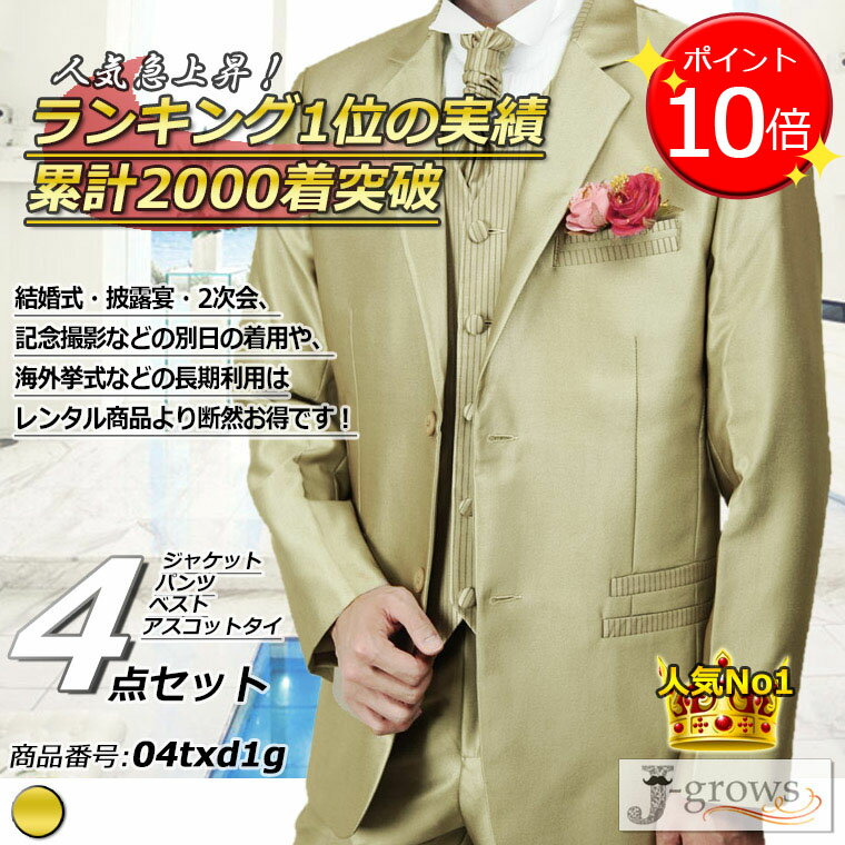 【売り切れ次第終了】【ポイント9倍UP!】タキシード 4点セット 販売 シャンパンゴールド 結婚式 海外 披露宴 二次会 パーティ 演奏会 発表会 フォーマル 人気 格安 購入 ウエディング ウェディング 大きいサイズ S〜5L 04txd1g