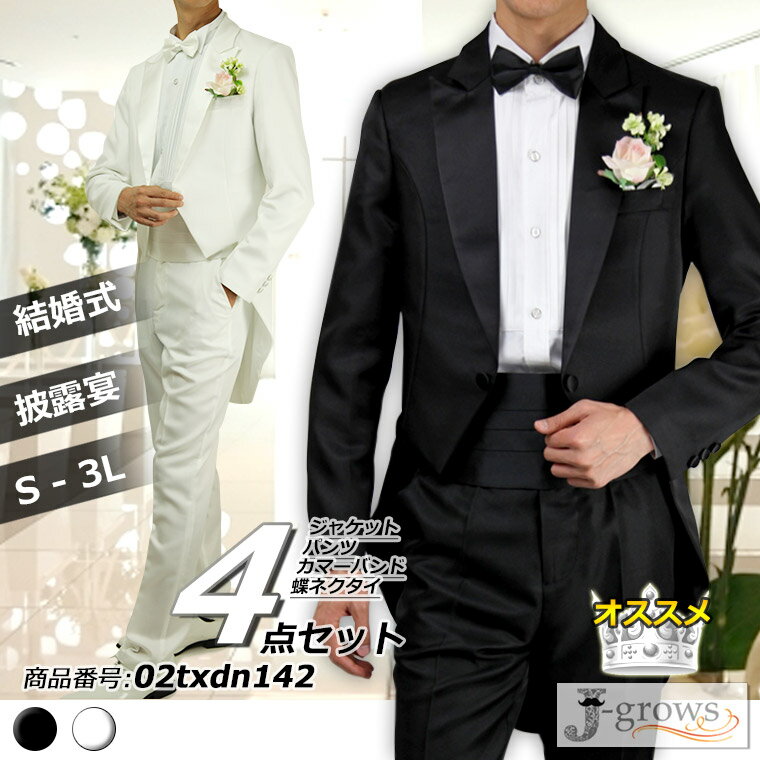 燕尾服(肩パット有り) 白 ホワイト 黒 ブラック ジャケット・パンツ・カマーバンド・蝶ネクタイ 4点セット 結婚式 パーティ 演奏会 発表会 ステージ衣装 舞台衣装 指揮者用 オーケストラ衣装 カラオケ衣装 タキシード仮面 おすすめ クラシック 清楚 サイズS~3L 02txdn142