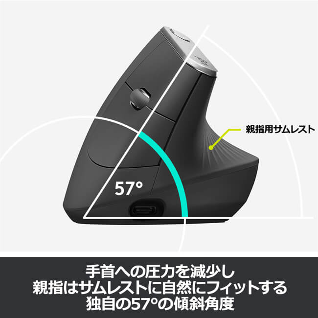 ロジクール ワイヤレスマウス MXV1s MX Vertical アドバンスエルゴノミックマウス 無線 マウス Unifying Bluetooth 高速充電式 windows mac iPad OS 対応 グラファイト 国内正規品 2年間無償保証