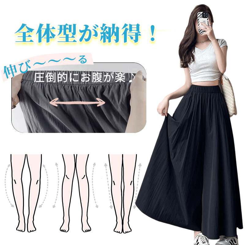 【2点割引】秋NEW TYPE\タイムセール★3,960⇒1,280~円/パンツ ワイドパンツ レディース 秋 柔らかい ウエストゴム サイドポケット 涼感 冷感 細見え 着痩せ ボトムス ゆったり 大きいサイズ S/M/L 春 夏 秋冬 春夏服装 スカートパンツ 夏 涼しい
