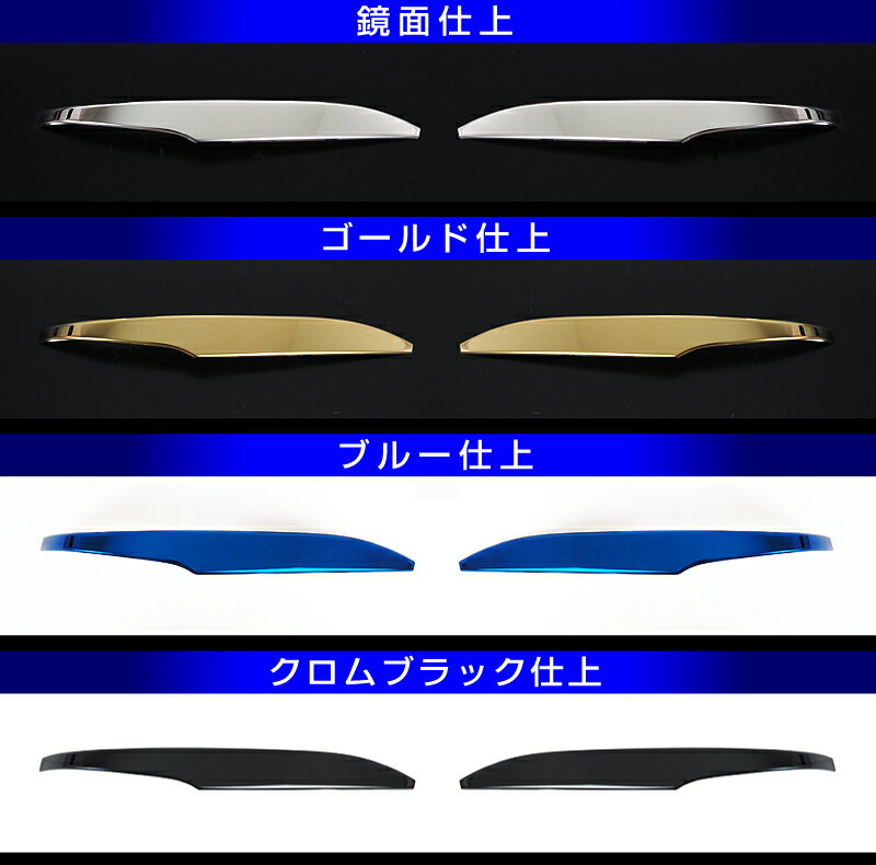 適合車種 ■トヨタ ヴォクシー 80系 前期型【2014(平成26)年1月〜】 ■トヨタ ヴォクシー 80系 後期型【2017(平成29)年7月〜】 【対応グレード】 HYBRID ZS HYBRID ZS "煌" HYBRID ZS "煌 2" HYBRID ZS "煌 3" HYBRID V HYBRID X ZS ZS "煌" ZS "煌 2" ZS "煌 3" V X ■トヨタ ノア 80系 前期型【2014(平成26)年1月〜】 ■トヨタ ノア 80系 後期型【2017(平成29)年7月〜】 【対応グレード】 HYBRID Si HYBRID Si"W×B" HYBRID Si"W×B 2" HYBRID Si"W×B 3" HYBRID G HYBRID X Si Si"W×B" Si"W×B 2" Si"W×B 3" G X ■トヨタ エスクァイア 前期型【2014(平成26)年1月〜】 ■トヨタ エスクァイア 後期型【2017(平成29)年7月〜】 【対応グレード】 HYBRID Gi HYBRID Gi"Premium Package" HYBRID Xi Gi Gi"Premium Package" Xi 【車両型式】 ZWR80W / ZRR80W / ZRR85W ZWR80G / ZRR80G / ZRR85G ※GR SPORTは非対応 セット内容 サイドミラー ガーニッシュ 2P 素材 ステンレス(SUS304) カラー 鏡面仕上げ ブルー ゴールド ブラック 商品説明 ノア・ヴォクシー・エスクァイア全車種に対応している、サイドミラーに装着するカスタムパーツです。 鏡面仕上げの自然で美しい輝き、アクセントとなるブルー仕上げ、絢爛豪華なゴールド仕上げ、お洒落なブラッククローム仕上げの4色をご用意しております。 好みに応じてカラーをご選択ください。 さりげないパーツですが、サイドビューをグッと引き締め、純正ドアミラーのシックなデザインを、さらに昇華するドレスアップパーツとなっています。 上質なフィッティングを追及するため、一から金型を作り直し、実車にて幾度もフィッティング確認を行い製作いたしました。 お取り付けは商品裏面装着済みの両面テープで貼り付けるだけの、お手軽な装着スタイルです。 繊細な形状の商品を輸送中も保護するため、白いクッション材の型に入れ、丁寧に梱包して発送いたします。 注意事項 ※マイナーチェンジ・年次改良などにより形状に変更があった場合、適合車種に記載があってもお取り付けができない場合がございます。 ※メーカーオプション、エアロパーツや他社オプションパーツ、エアロパーツ装着車への取付確認は当店では行っておりません。 ※エアロパーツ装着車の取付保証・サポートはお受けできかねます。 ※ご自身の車体形状・グレードを事前にご確認ください。ご不安な場合は当店までご相談ください。 ※商品のイメージ違い、グレード・車体形状確認不足による返品はお受けできかねます。 ※検品・梱包は最大限配慮しておりますが、お取り付けに問題のない小傷での交換・返品はお受けできかねます。 保証について ■商品到着後から6ヵ月 ※保証期間を超えますと、如何なる場合でもご対応いたしかねます。 ※商品裏面に両面テープがついている商品は、両面テープの赤い保護フィルムを剥がされますと保証期間内であっても保証対象外となります。 ※製品裏面のステンレス汚れ・傷やメッキ・塗装剥げは生産仕様上発生する場合があるため、保証対象外となります。 ※お取り付け後の保証は当店では一切お受けできかねます。(装着後の傷、剥がれ、落下など) ※アウトレット品は傷・汚れによる保証は対象外となります。 送料について ■3,980円(税込)以上購入で送料無料 ※北海道は3,980円以下(税込)、沖縄・離島は9,800円以下(税込)のお買い物時に中継料が発生いたします。 ※お届け先に応じて値段は変動いたします。詳細は当店までお問い合わせください。 お問い合わせについて ■メールでのお問い合わせは必ず2営業日以内に必ずご返信をさせて頂いております。 2営業日以内にメールが届かない場合は迷惑メール設定などによって振り分けられている可能性がございます。 メールの設定を見直していただくか、お電話にてお問い合わせください。 お急ぎの場合はお電話にてお問い合わせください。