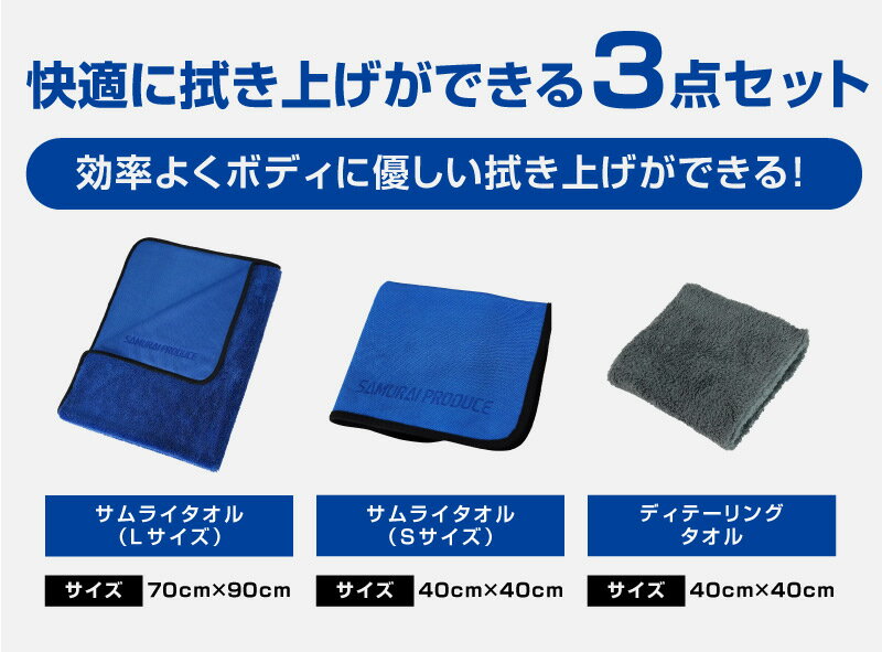 【予約】超吸水 サムライタオル 大判 Lサイズ 70cm×90cm & Sサイズ 40cm×40cm & ディテーリングタオル 洗車 タオル 拭き上げ専用 マイクロファイバータオル 3枚セット 洗車キズが付きにくい 洗車の必需品【11月30日頃入荷予定】