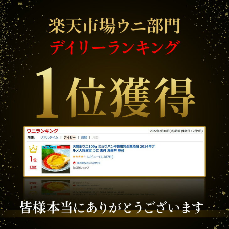 天然生ウニ100g ミョウバン不使用完全無添加 2014年グルメ大賞受賞 うに 雲丹 海鮮丼 寿司