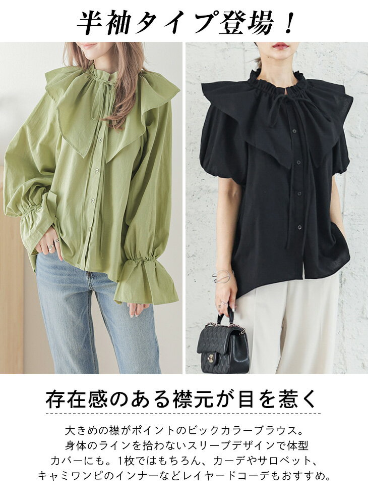 【在庫一掃】ビッグカラーブラウス 半袖 長袖 トップス キャンディースリーブ レイヤード レディース 体型カバー フリーサイズ メール便 2025秋冬 【lstp302-355】【即納:1-5営業日】【送料無料】ユ込3