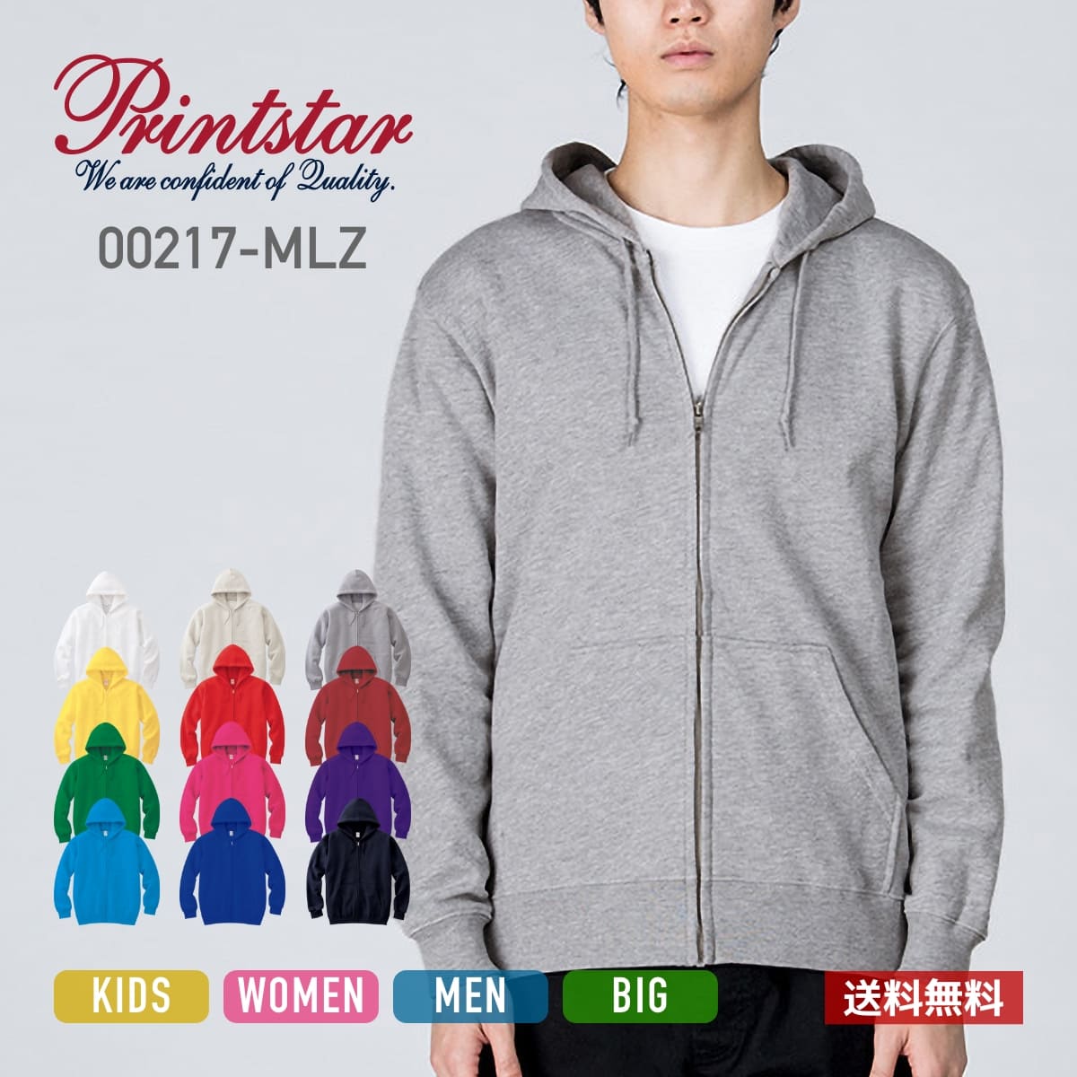 パーカー メンズ レディース 無地 Printstar プリントスター 8.4オンス ジップアップ ライト パーカー 00217-MLZ 上 トップス 送料無料 男 女 キッズ 大きいサイズ ホワイト 白 ブラック 黒 ネイビー 青 ブルー 緑 グリーン グレー 裏毛 裏パイル カラバリ豊富 100cm-2XL