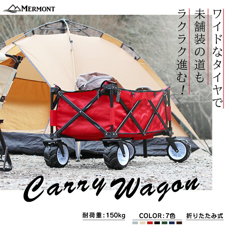 アウトドアでキャンプやバーベキューはもちろん、お買いものや運搬時にとても便利な大容量キャリーカートです。 折りたたみ式でコンパクトに収納可能! 組み立て不要です♪ マルチキャリーは大容量で耐荷重は150kgと重い荷物も1度に運ぶことができる! 使い方はいろいろあります! ・スポーツ用品の運搬に。 ・オフィス内のキャリーに。 ・ガーデニング用として。 ・キャンプ用品(テント・タープ・テーブル・チェア)の運搬に。 などなど。 あらゆるシーンで大活躍することに間違いなしです♪ 大型タイヤでスムーズ楽々移動。 また、折りたたみ式なのでコンパクトに変わり、持ち運ぶ時も簡単! レジャー時など車の中に入れて置くだけで、頼もしいアイテムです。 商 品 詳 細 カラー レッド ブラウン ネイビー ブラック グリーン グレー ベージュ サイズ(約) 本体:(約)幅56cm×奥行90cm×高さ54-84cm かごの寸法:(約)幅45cm×奥行85cm×高さ30cm 折りたたみ時:(約)幅35cm×奥行26cm×高さ75cm 耐荷重 (約)150kg 重量 (約)8.5kg 材質 スチール、ポリエチレン、ゴム他 ※タイヤ:PU 保証期間 30日間 ※商品到着後30日以内の初期不良・破損のみご対応させていただきます。 注意事項 ・用途以外(イス・踏み台等)に使用しないで下さい。 ・ブレーキはありません。坂道や傾斜地での停車は避け平坦な場所で停車して下さい。 ・ハンドルは必ず伸ばした状態で使用して下さい。収納状態で使用すると破損する恐れがあります。 ・ハンドルは伸ばした状態&ロックが掛かった状態でも強く押すと下がりますので、ご注意ください。(不良ではありません) ・折りたたみをするときに指を挟まないように注意して下さい。 ・海外製品で、簡易梱包での輸入のため風防に擦れや多少の小キズなどがある場合がございますが、商品自体には問題ありませんのでご了承下さい。 ・商品は、モニターによって色合いが異なって見える場合があります。 ・仕様・デザインは改良のため予告なく変更することがあります。 配送について 送料 無料 ※北海道・沖縄・離島等、一部地域は別途中途料がかかります。 備考 ・配達地域や交通事情等により、希望配達日時にお届けできない場合がございます。あらかじめご了承ください。 ▼検索ワード アウトドアワゴン キャリーカート 折りたたみ 4輪 キャリーワゴン 大型タイヤ アウトドア ワゴン ワイド タイヤ マルチキャリー コンパクト 折り畳み レジャーカート カート アウトドアカート キャンプ 台車 マルチキャリー アウトドア レジャー スポーツ 便利 荷台 コロコロ 荷物運び ワゴン コンテナ 買い物 キャンプ用品 折りたたみマルチキャリーカート キャリー 敬老の日 母の日 父の日 ギフト 誕生日 プレゼント 父の日ギフト 誕生日プレゼント 結婚祝い 福袋 メンズ レディース 男性 女性 あす楽 人気 おすすめ 送料無料 WEIMALL GARAGECOLLECTION WEIWEIホールディングス▼ラインナップ▼ キャリーワゴン 大型タイヤ キャリーワゴン コンパクト キャリーワゴン 大型タイヤ キャリーワゴン 屋根付き おススメアイテム タープテント レジャーテーブル キャリーカート